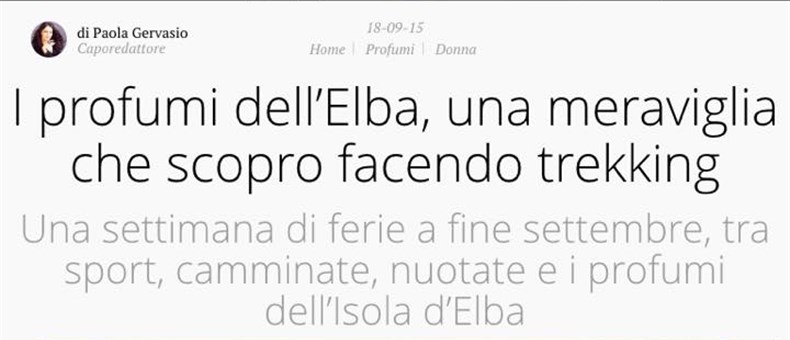 This is the beginning of the article speacking about Acqua dell'Elba in the digital pages of Glamour.it, with an article about the "Mal d'Elba" (Elba Sickness for missing Elba) and which "medicines" to use. One for all, the perfumes created by Acqua dell'Elba, for example, as explains the well-known magazine ....
