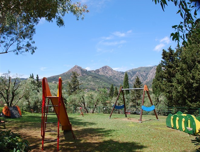 La struttura è immersa in un ampio parco naturale di circa 12.000 mq, caratterizzato da pioppi, acacie, eucalipti, pini e agrumi, oltre a profumate siepi di pitosforo e oleandro, fiori e macchia mediterranea. Un contesto verde e curato che garantisce relax, privacy e contatto con la natura.