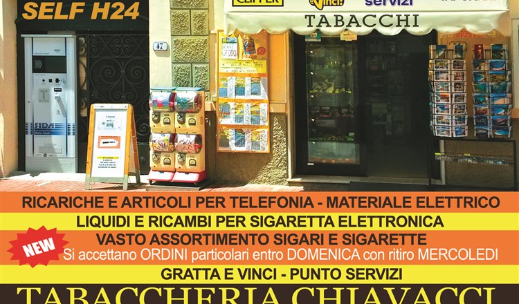 Situata nella centralissima via Roma, al n.51, la TABACCHERIA CHIAVACCI offre un ampio assortimento di prodotti da fumo, trinciati e tutti gli articoli del sigaro TOSCANO.