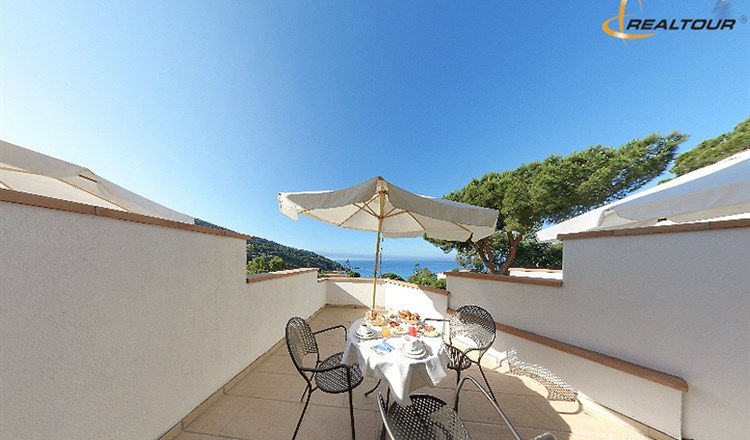 La struttura, moderna ed elegante, è circondata da un rigoglioso giardino mediterraneo ricco di profumi e colori. L’affaccio diretto sul mare regala panorami emozionanti e valorizza il potere rilassante della natura circostante. Il tratto di mare sottostante l’hotel è considerato tra i più belli e rinomati di tutta l’Isola d’Elba.