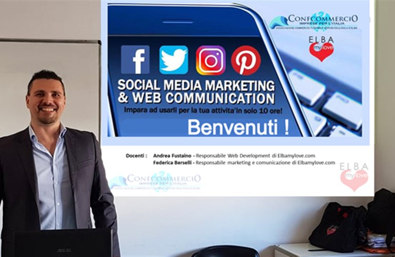 E' iniziato ieri il CORSO SOCIAL MEDIA MARKETING & WEB COMMUNICATION organizzato da Confcommercio Elba che ospita come docenti Andrea Fustaino e Federica Berselli di Elbamylove.