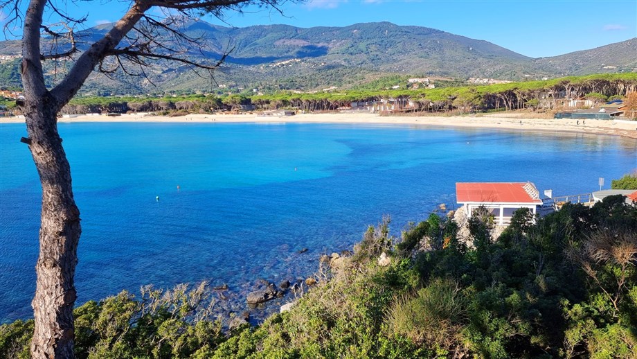 Il centro di Marina di Campo si raggiunge con una passeggiata sul lungomare, ma sarà difficile voler lasciare la quiete e la vista che solo questa casa sa offrire.